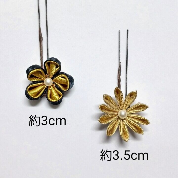 【送料込】モダンテイストでクールな大人セット|つまみ細工髪飾り 卒業式髪飾り 成人式髪飾り 結婚式髪飾り 七五三髪飾り シンプルでクール 黒 ゴールド シルバー