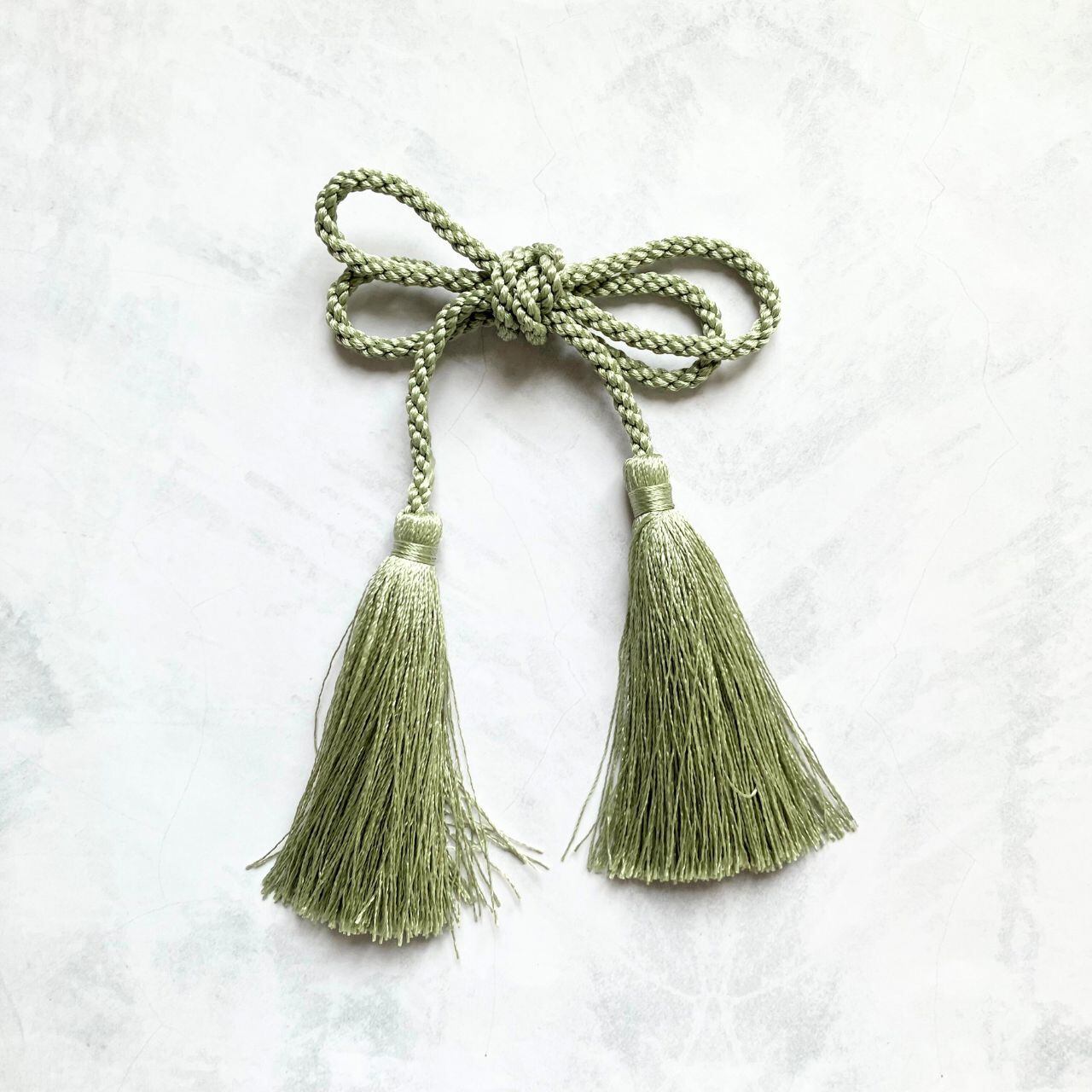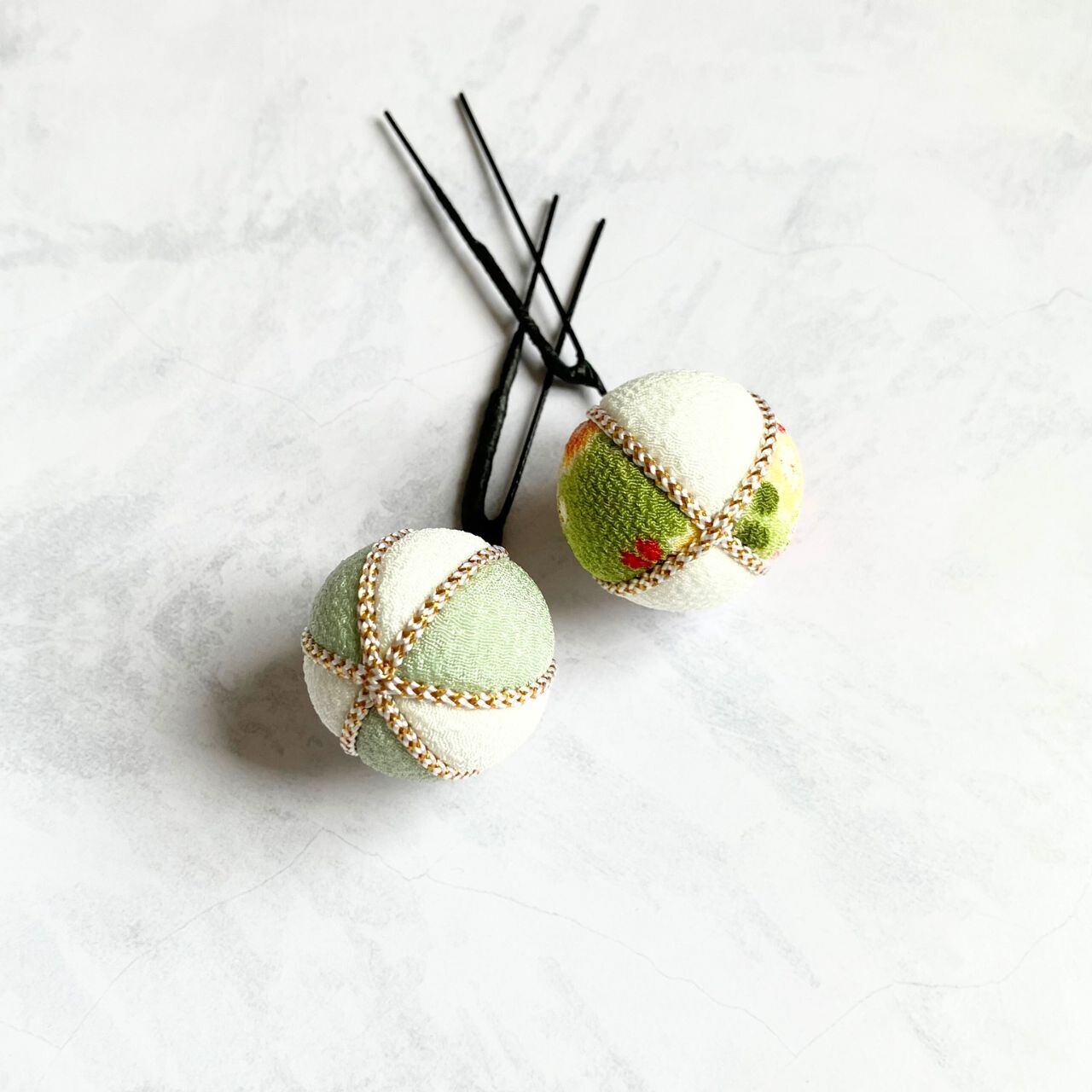 華やかな玉飾り、ミントグリーンのタッセルは軽やかに揺れて、可愛らしくも上品にも仕上がる世代を問わない髪飾りです。