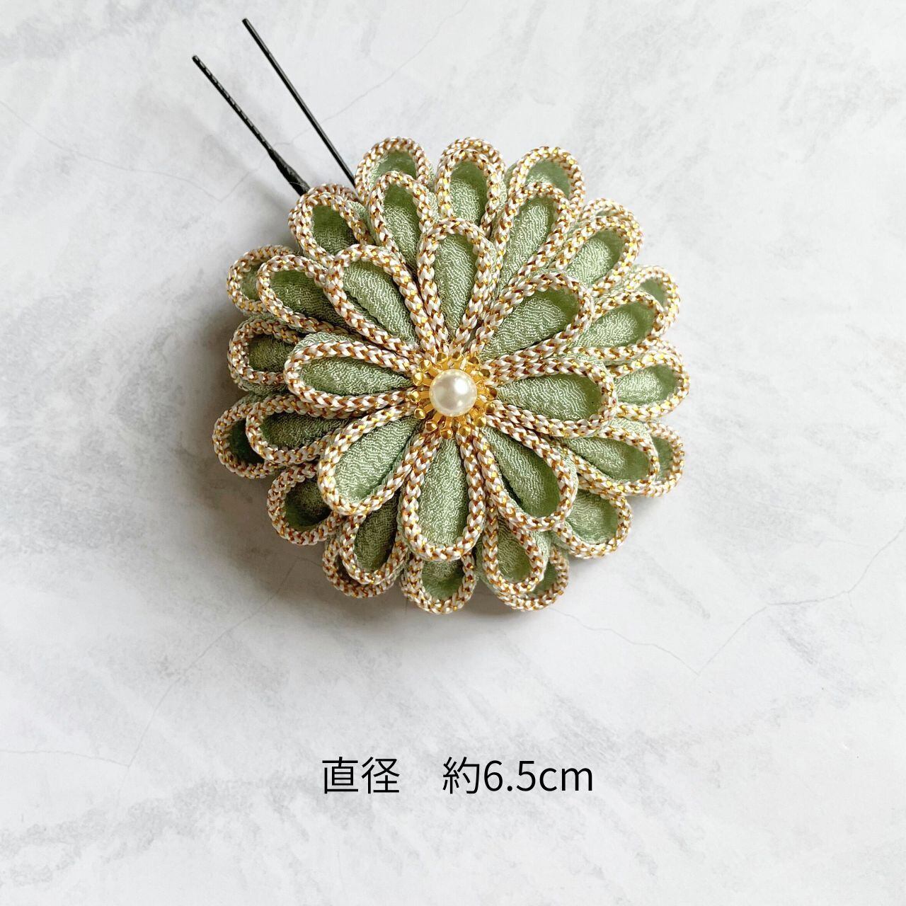 【送料込】ミントグリーンと白 成人式 卒業式 髪飾り つまみ細工 ダリアとタッセルセット