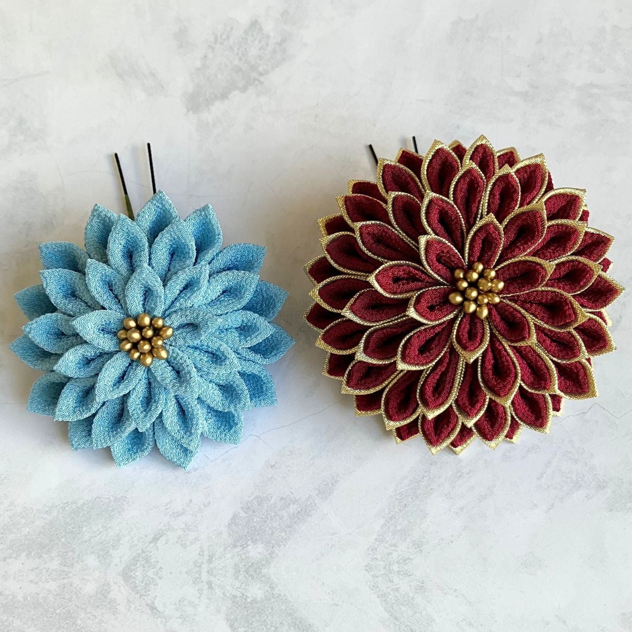 成人式に合わせたダリアのお花 2個セットのオーダーいただきました。