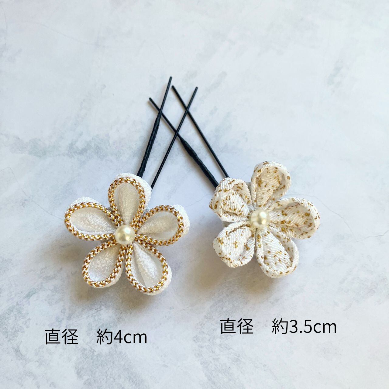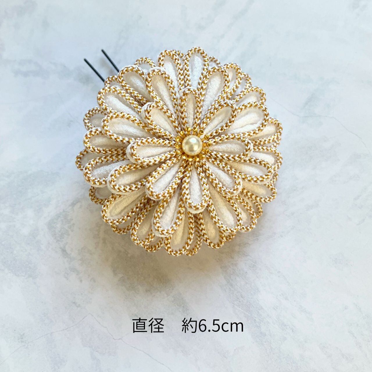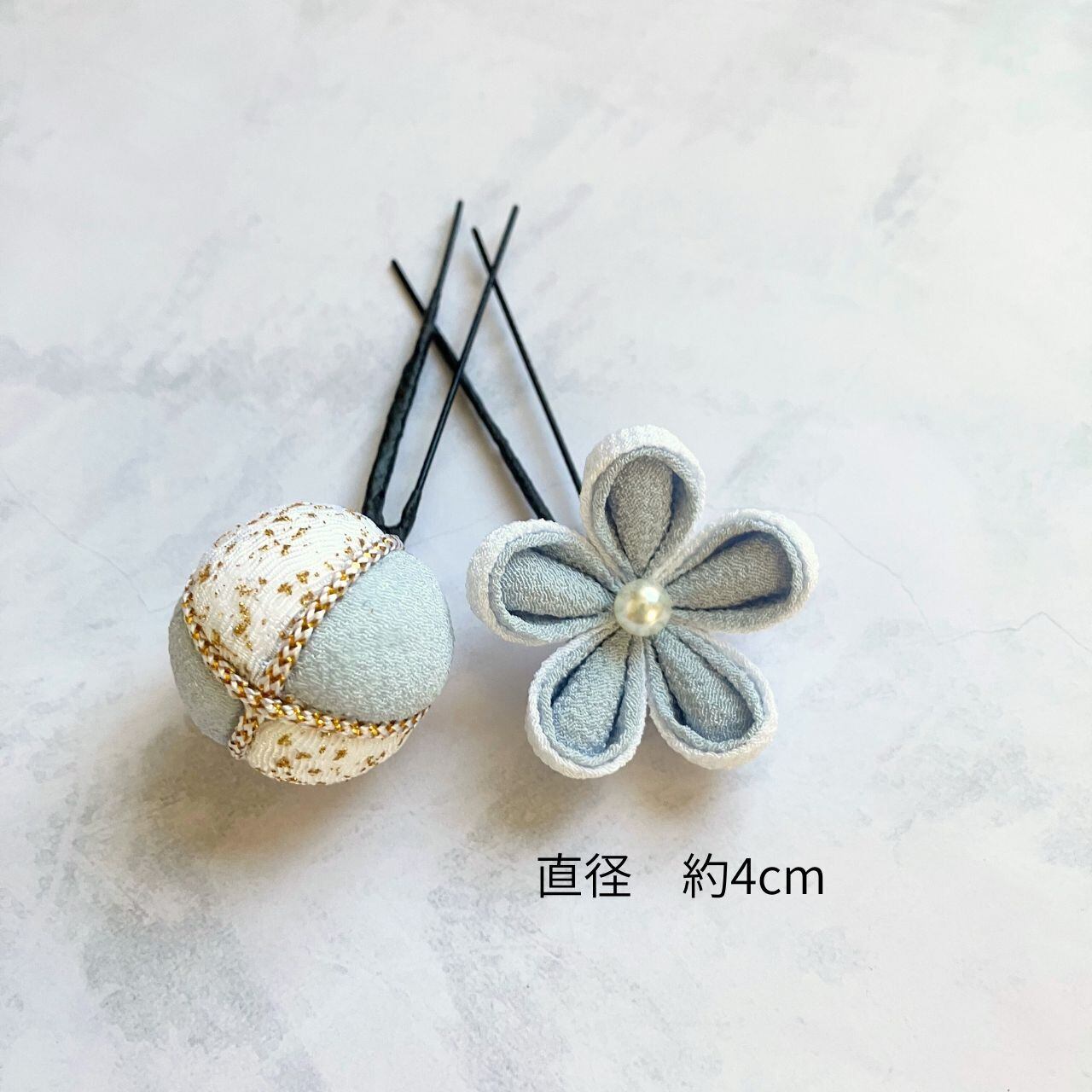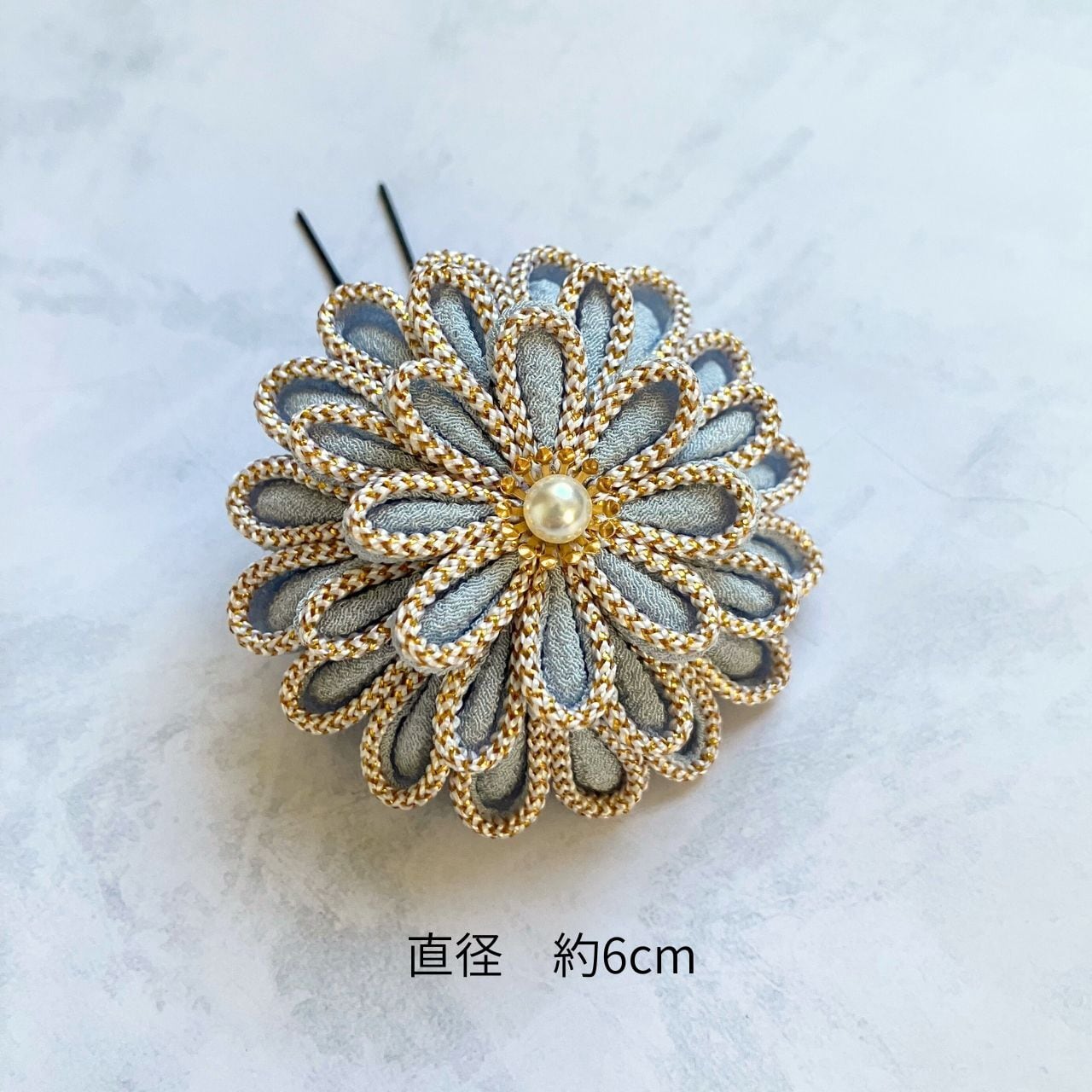 【送料込】白とブルーグレー 成人式 卒業式 髪飾り つまみ細工 ゴールドタッセルセット